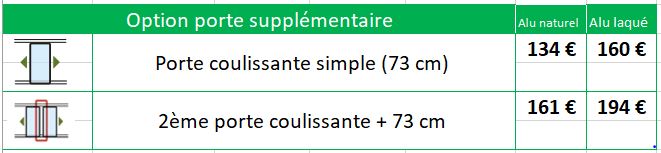 Aluminium laqué vert (ral 6009) ou noir (Ral 9005). Descentes de gouttières. Porte coulissante simple et un louvre inclus Embase. Largeur vitrage...