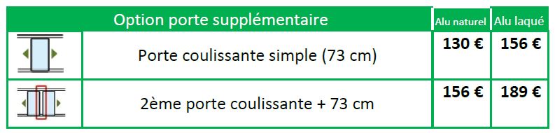 Aluminium naturel Descentes de gouttières Porte coulissante simple et un louvre inclus Embase. Largeur vitrage 73 cm